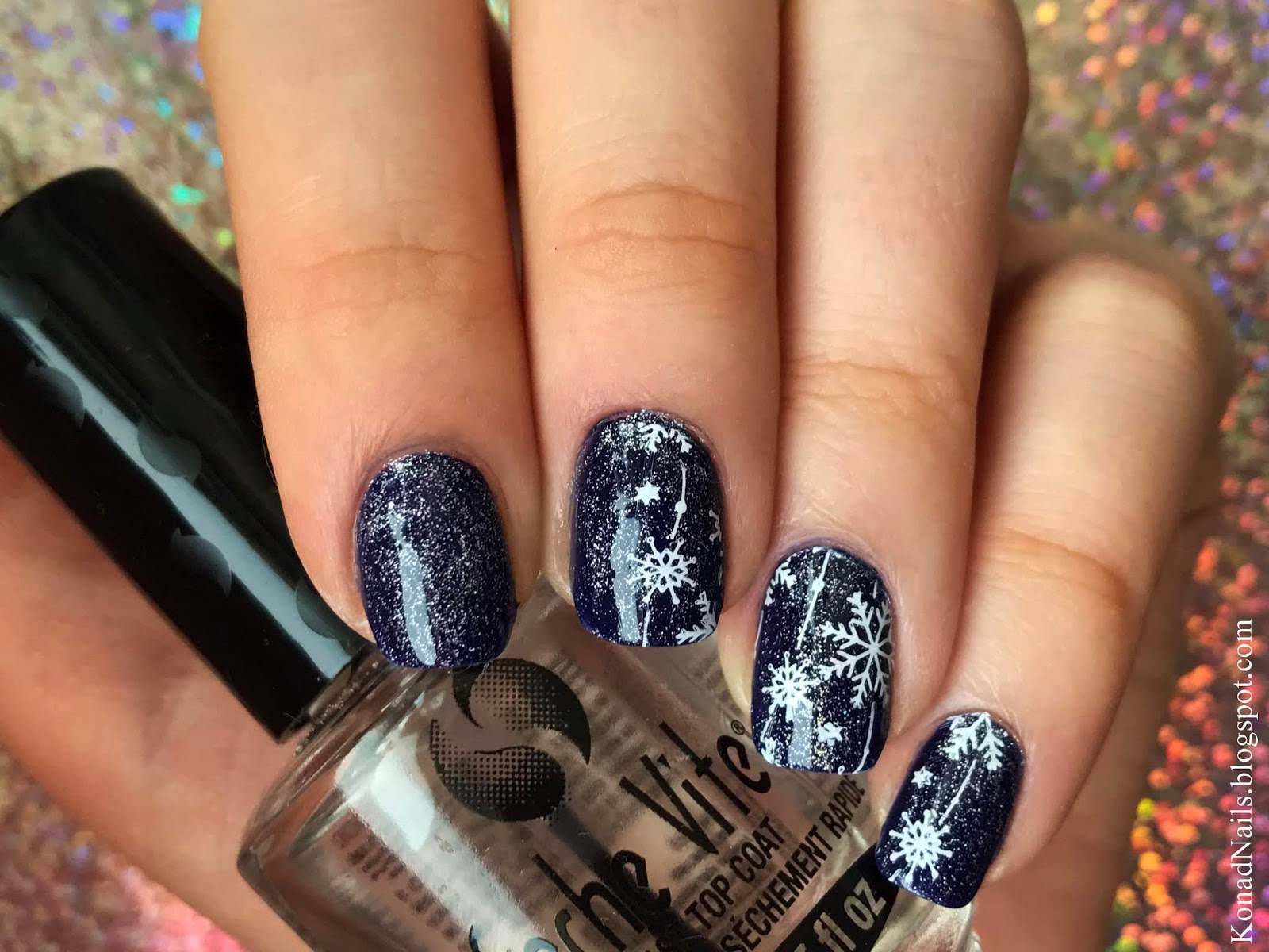 Today I'll show you a manicure that I created using two nail polishes from the OPI's new collection The Nutcracker and the Four Realms: March in uniform and Tinker, Thinker, Winker. I started with two coats of the dark blue and one coat of the holographic top coat. As you can see, a single coat added a lot of holo particles on my nails, it's really intense. Then I stamped the snowflakes from Born Pretty's Christmas L002 stamping plate using special stamping nail polish in the shade Pure. I finished with Seche Vite top coat for some extra shine. What do you think?